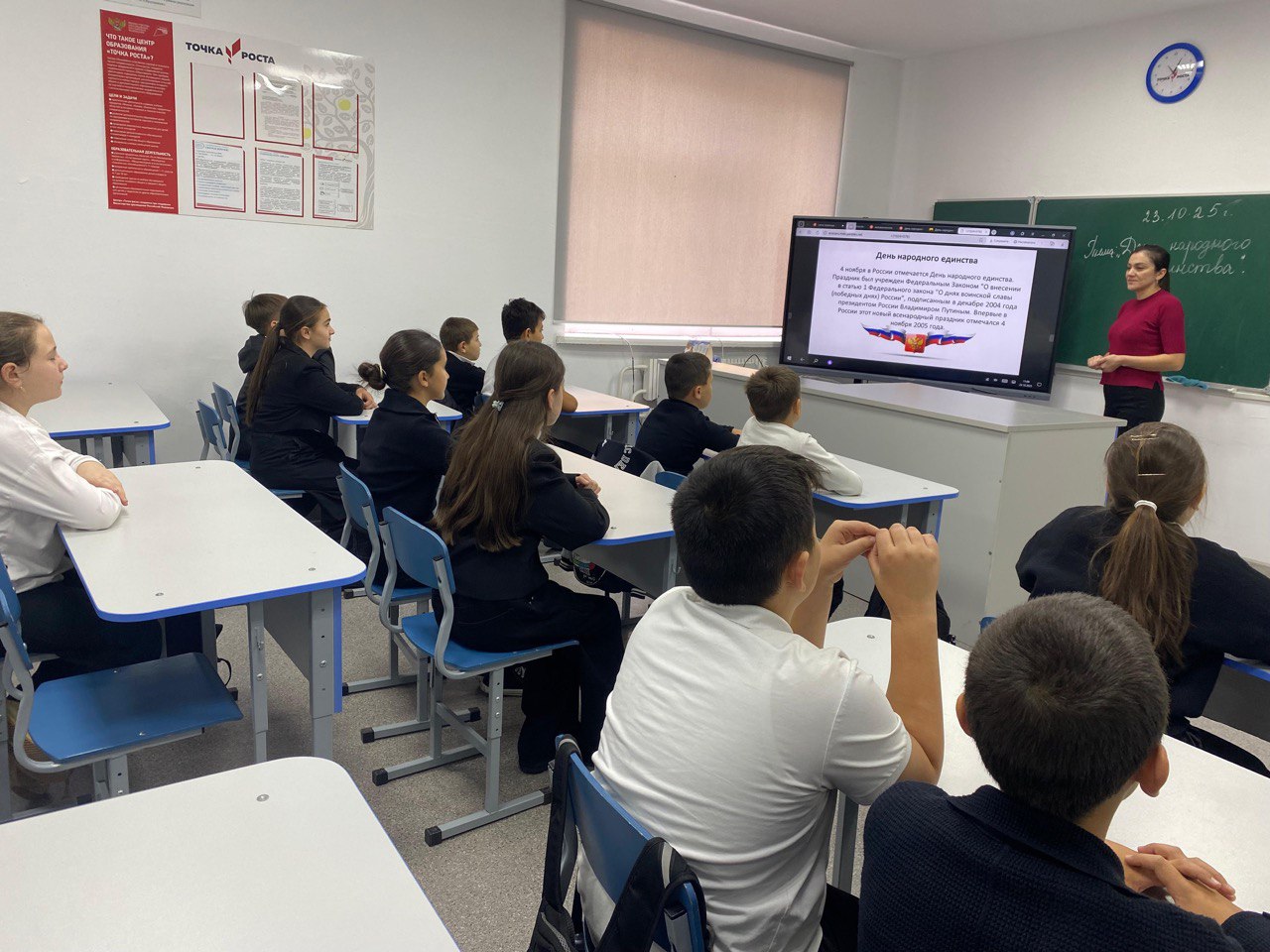 Учащиеся узнали, почему 4 ноября стало памятной датой для всей страны и какие исторические события легли в основу этого от праздника. Также обсудили ключевые ценности, которые помогают людям разных культур жить в мире и согласии.
